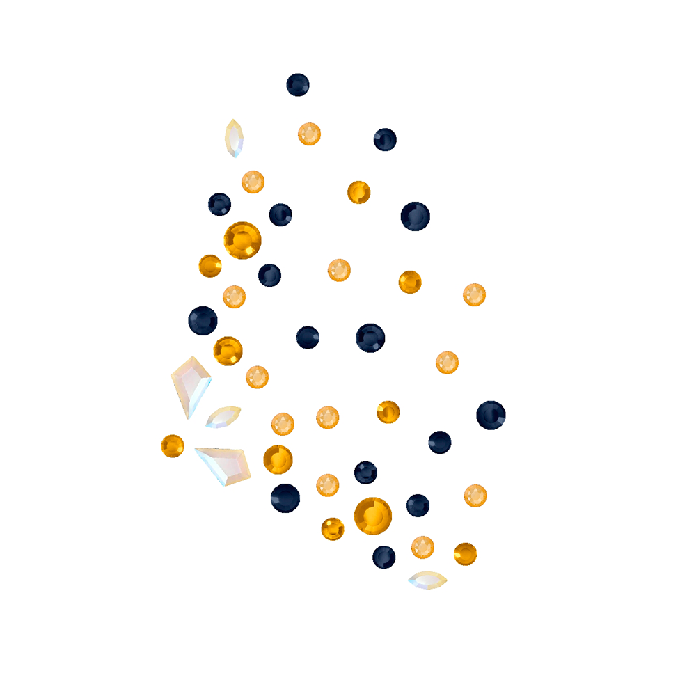 Add a subtle yet powerful sparkle to your competition outfit with our orange Swarovski® design in navy and crystal. This refined combination is created to perfectly complement the rest of your show look.